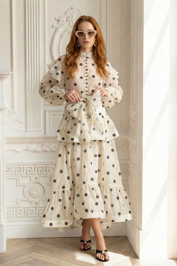 Alina - Off Shoulder Textured Co-Ord with Bow Accents